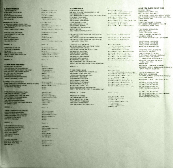 Japan Initial first pressing with wider Limited Edition obi, 4-page green tinted insert featuring liner notes & lyrics, and Ritchie Blackmore color poster.Text on the right side of obi explains that it's "Limited Edition of 50,000 and comes with a giant color poster inside"