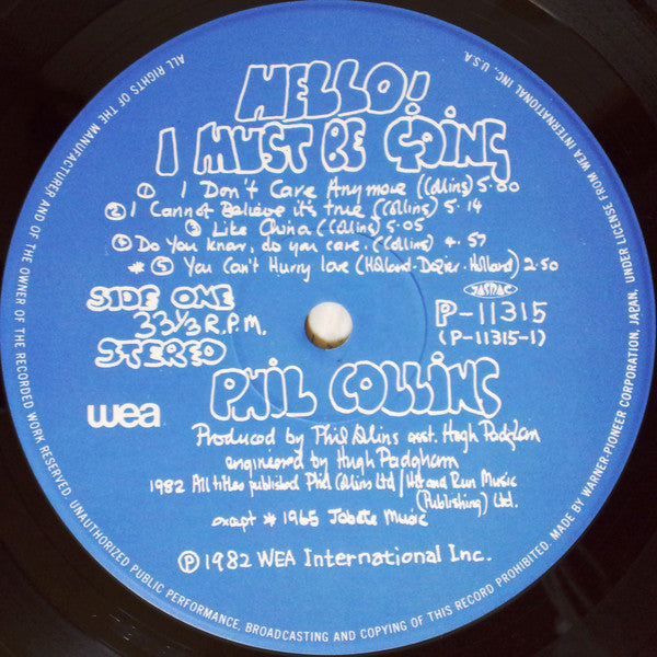 Phil Collins - Hello, I Must Be Going (Vinyl, LP, Album, Stereo) Very Good (VG) / Good Plus (G+)