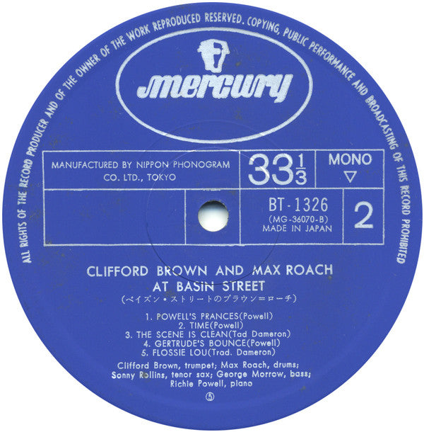 Clifford Brown And Max Roach - At Basin Street (Vinyl, LP, Album, Reissue, Mono) Very Good (VG) / Good Plus (G+)