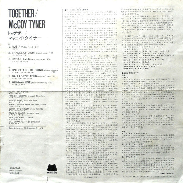 McCoy Tyner - Together (Vinyl, LP, Album) Very Good Plus (VG+) / Good Plus (G+)