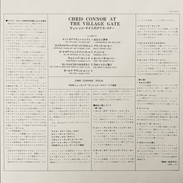 Chris Connor - At The Village Gate (Vinyl, LP, Album, Stereo) Very Good Plus (VG+) / Very Good Plus (VG+)