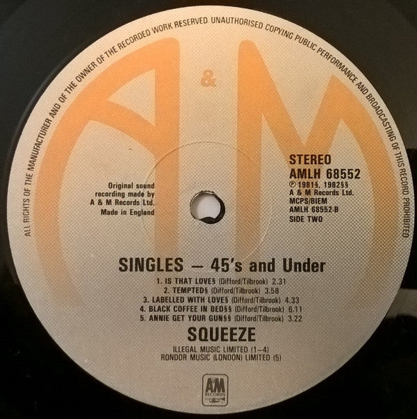 Squeeze (2) - Singles - 45's And Under (Vinyl, LP, Compilation) Very Good Plus (VG+) / Very Good (VG)