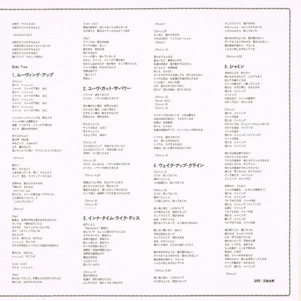 Includes obi & 6 page foldout notes/lyrics insert.℗TW Music Limited. 1982/Manufactured by CBS/Sony Inc.(Tokyo Japan)/[CBS Logo]®CBS Inc./Sony ® Sony Corp.(kp)