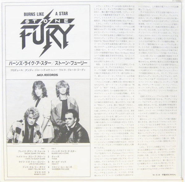 Stone Fury - Burns Like A Star (Vinyl, LP, Album) Very Good Plus (VG+) / Very Good Plus (VG+)