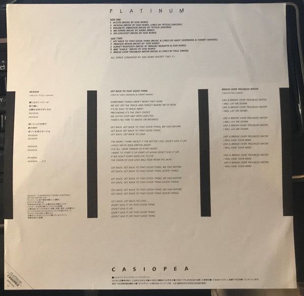 Casiopea - Platinum (Vinyl, LP, Album) Very Good Plus (VG+) / Fair (F)