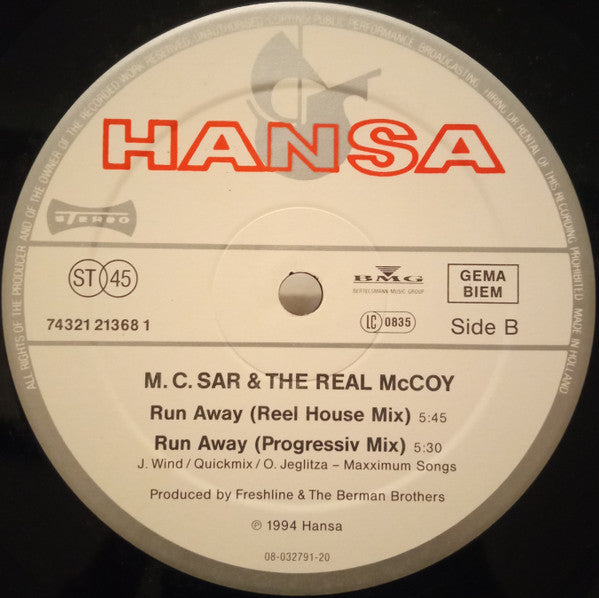 Real McCoy - Run Away (Vinyl, 12", 45 RPM) Very Good Plus (VG+) / Very Good Plus (VG+)