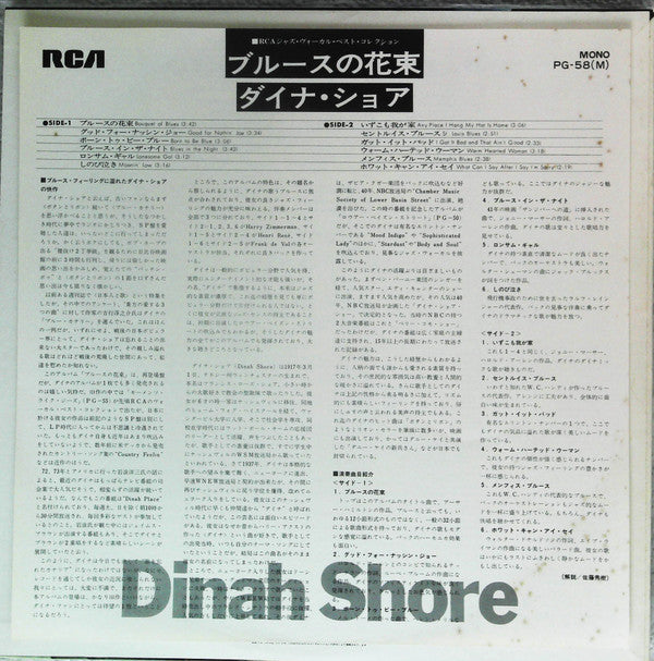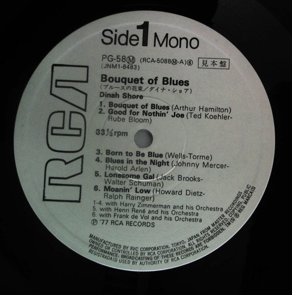 Dinah Shore - Bouquet Of Blues (Vinyl, LP, Promo, Reissue, Mono) Very Good Plus (VG+) / Good (G)