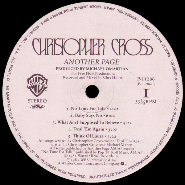 Christopher Cross - Another Page (Vinyl, LP, Album, Stereo) Very Good (VG) / Very Good Plus (VG+)