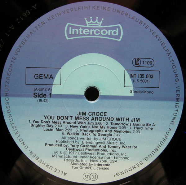 Jim Croce - You Don't Mess Around With Jim (Vinyl, LP, Album, Reissue, Stereo, Mono) Very Good Plus (VG+) / Very Good (VG)