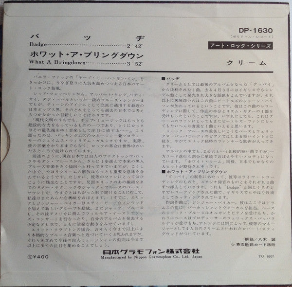 Cream (2) - Badge (Vinyl, 7", 45 RPM, Single, Mono) Very Good Plus (VG+) / Very Good (VG)