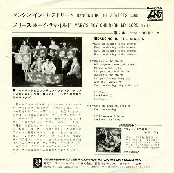 Post-Christmas re-issue of Boney M. - Mary's Boy Child / Oh My Lord with "Dancing In The Streets" now as the A-side.℗ 1978