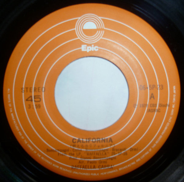 Raffaella Carrà - California = 燃えるカリフォルニア (Vinyl, 7", 45 RPM) Very Good Plus (VG+) / Very Good (VG)