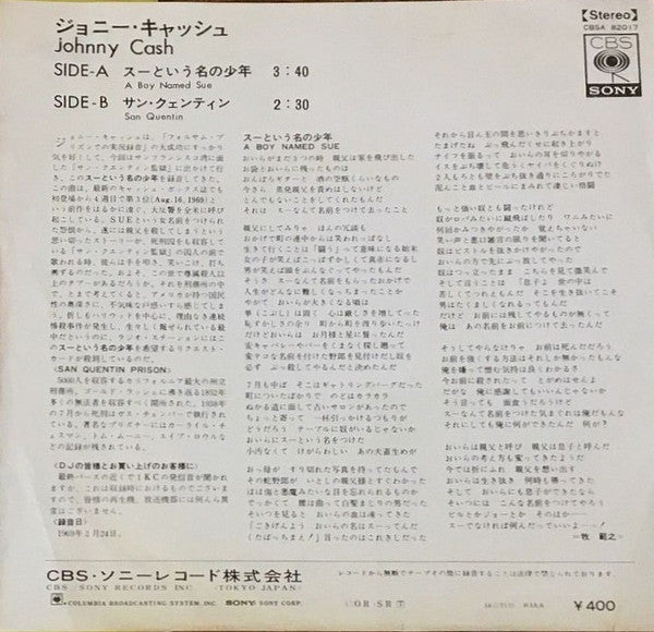 Title | A Boy Named Sue / San Quentin |