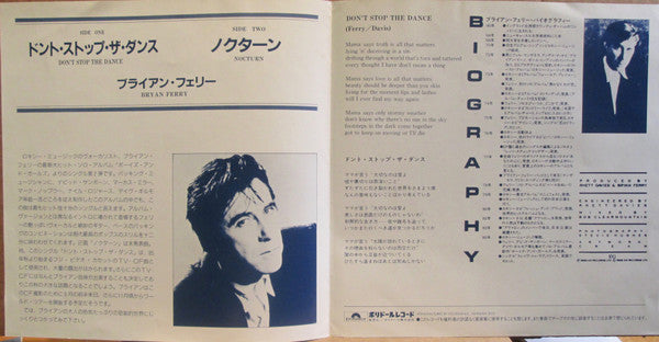 Issued in a generic Polydor K.K. paper sleeve with a gatefold insert.Insert features artwork, Bryan Ferry biography, Don't Stop The Dance lyrics in English and Japanese and an ad for Super AG new Fuji video cassette on the back.