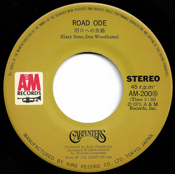 Carpenters - Yesterday Once More / Road Ode = イエスタデイ・ワンス・モア / 明日への旅路 (Vinyl, 7", 45 RPM, Single, Stereo) Very Good (VG) / Very Good Plus (VG+)