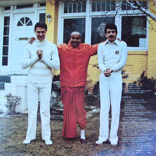 White text over grey text: SOPL 200 [CBS/Sony logo] CARLOS SANTANA MAHAVISHNU JOHN MCLAUGHLIN LOVE DEVOTION SURRENDER SOPL 200
