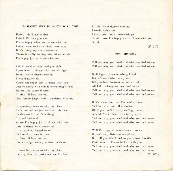 | Title | I'm Happy Just To Dance With You / Tell Me Why |