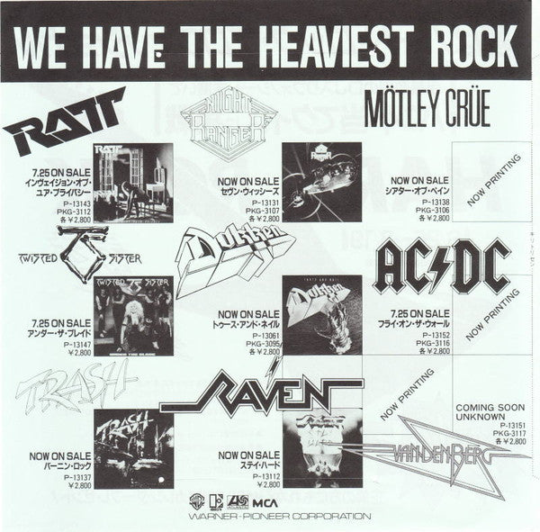1st Pressing Obi Credited Warner Brothers Hard Rock Campaign 1985 June 25th to August 19th.