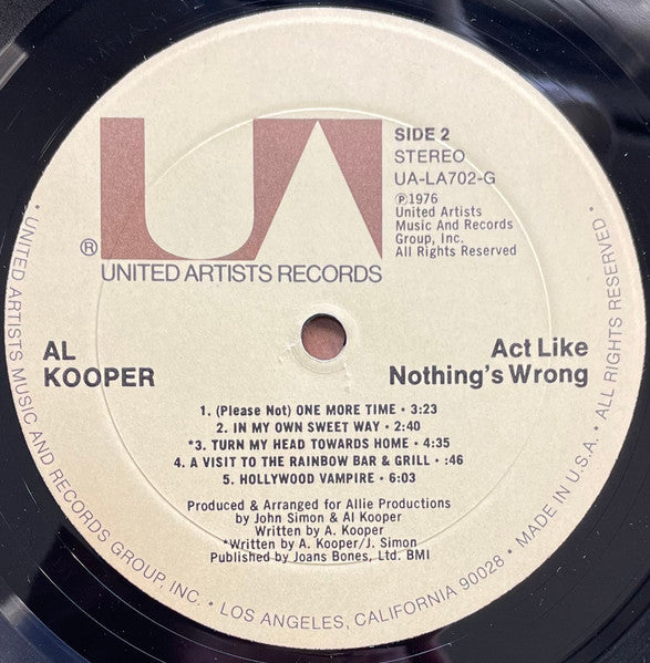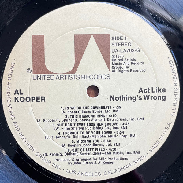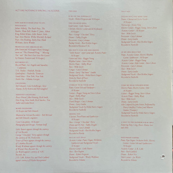 Al Kooper - Act Like Nothing's Wrong (Vinyl, LP, Album, Stereo) Very Good Plus (VG+) / Very Good Plus (VG+)