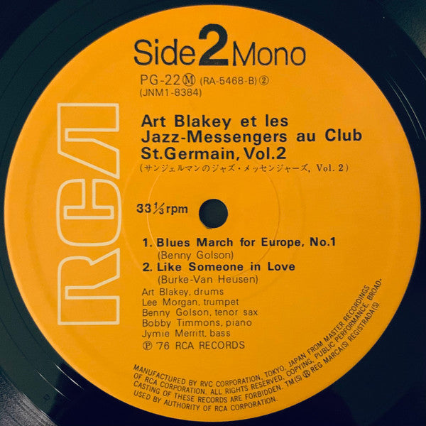 Art Blakey & The Jazz Messengers - Au Club Saint-Germain / Vol. 2 (Vinyl, LP, Album, Limited Edition, Reissue, Mono) Very Good Plus (VG+) / Good Plus (G+)