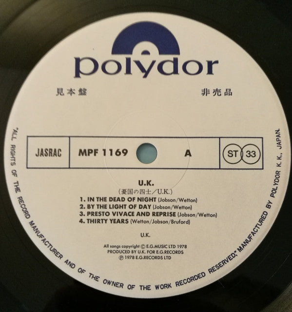 UK (3) - U.K. (Vinyl, LP, Album, Promo, Stereo) Very Good (VG) / Very Good (VG)