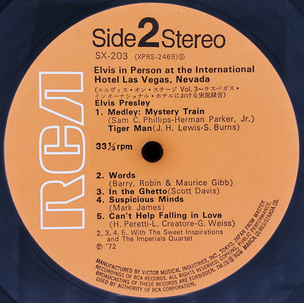 This is Vol.3 of 4 エルヴィス・オン・ステージ (Elvis On Stage) releases in the Golden Disk series of 45 titles.