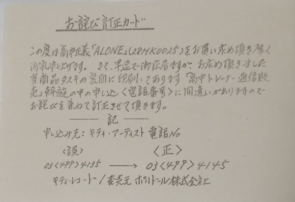 Masayoshi Takanaka - Alone (Vinyl, Flexi-disc, LP, Album, Stereo, 45 RPM, Single Sided, Limited Edition, Stereo) Very Good Plus (VG+) / Very Good Plus (VG+)