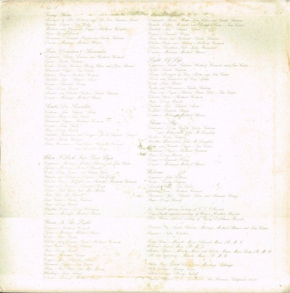 © 1973 CBS Inc./℗ 1973 CBS Inc. Manufactured by CBS/Sony Inc. (Tokyo, Japan)/[CBS logo] ® Columbia Broadcasting System Inc./SONY ® Sony Corp./P.M.S.J [unidentified logo in box]/¥2,200