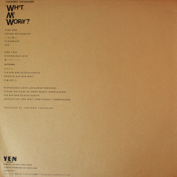 Yukihiro Takahashi - What, Me Worry? (Vinyl, 12", EP) Very Good (VG) / Very Good Plus (VG+)