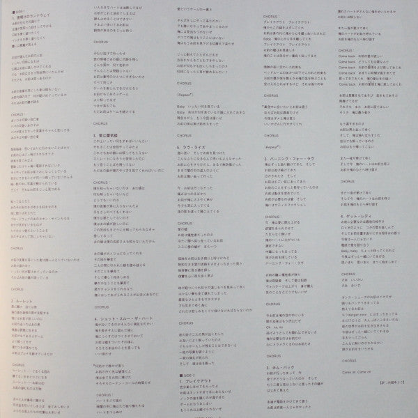 With obi and lyrics insert sheet.A1: © 1982 Jamb Co., George Karakoglou Publ. and Simile Music Ltd. (ASCAP)