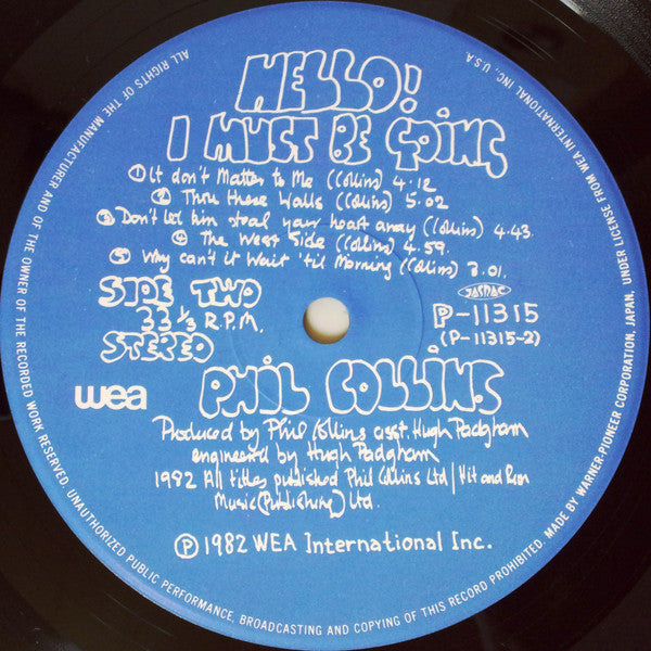 Phil Collins - Hello, I Must Be Going (Vinyl, LP, Album, Stereo) Very Good Plus (VG+) / Very Good Plus (VG+)
