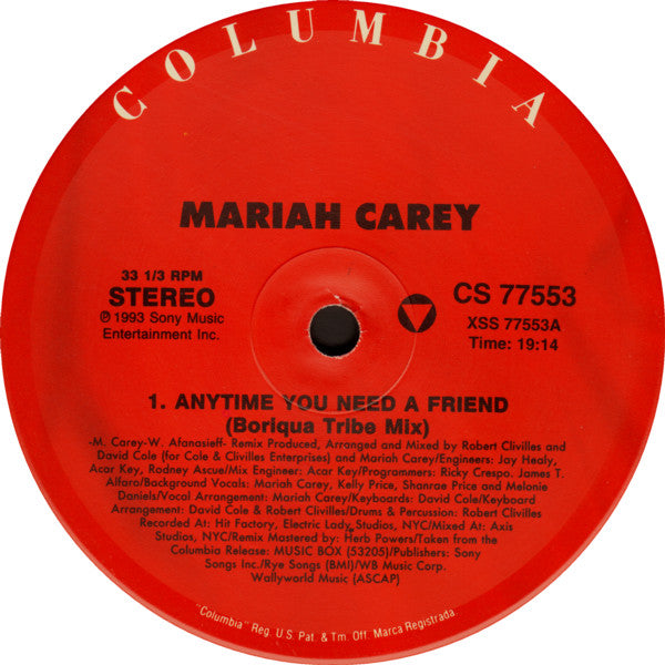 Mariah Carey - Anytime You Need A Friend (2xVinyl, 12", 33 ⅓ RPM, Stereo) Good Plus (G+) / Good (G)