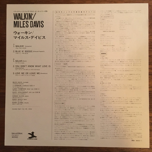 Miles Davis All Stars - Walkin' (Vinyl, LP, Album, Reissue, Mono) Very Good (VG) / Good (G)
