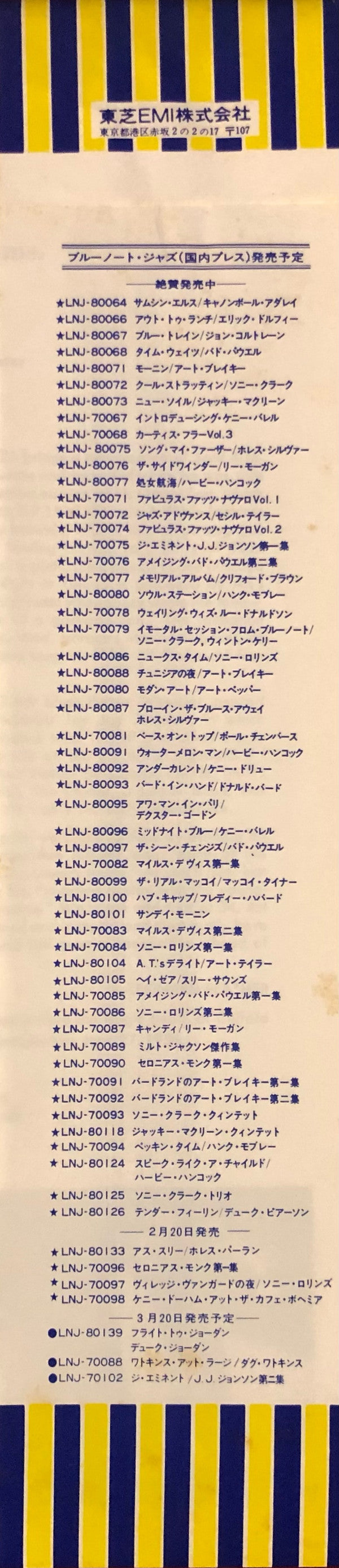 MADE IN JAPAN (I) (LNJ-70091) "Trademarks owned by United Artists and Records Group, Inc., and used by TOSHIBA-EMI Ltd, under authorization."〄 (Japanese Industrial Standards) symbol etched into dead wax on each side.