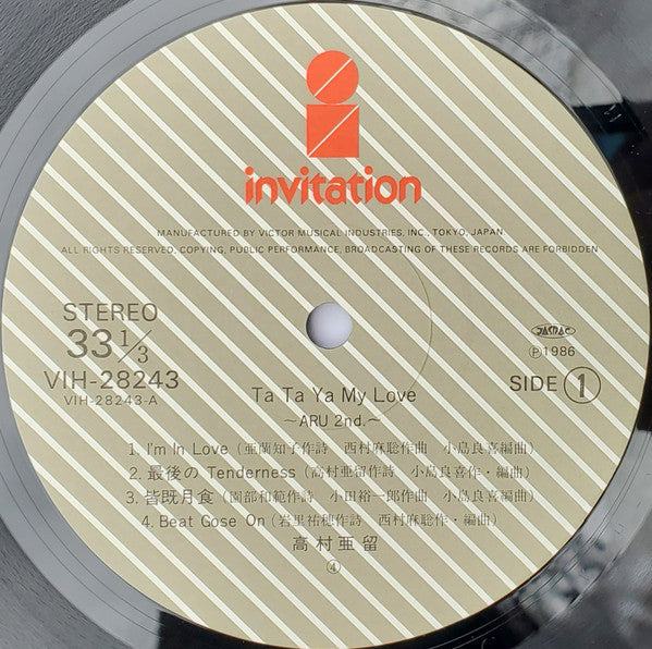 Aru Takamura - Ta Ta Ya My Love~Aru 2nd.~ (Vinyl, LP) Very Good Plus (VG+) / Very Good (VG)
