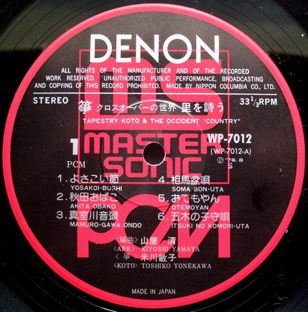 Toshiko Yonekawa - Tapestry Koto & The Occident Country = 琴 里を詩う (Vinyl, LP) Very Good Plus (VG+) / Very Good (VG)
