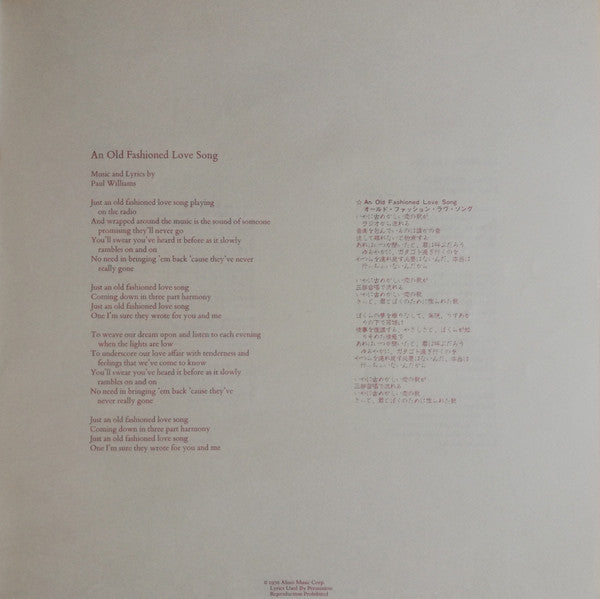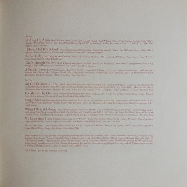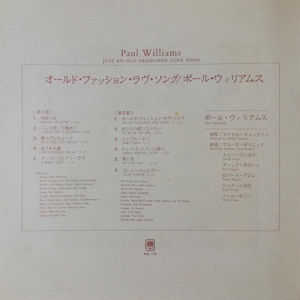 Paul Williams (2) - Just An Old Fashioned Love Song (Vinyl, LP, Album) Very Good Plus (VG+) / Very Good Plus (VG+)