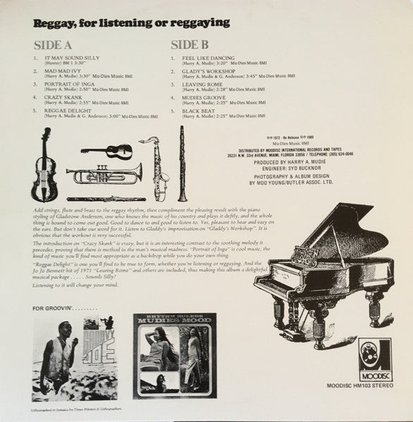 Distributed By Moodisc International Records and Tapes20231 N.W. 33rd Avenue, Miami, Florida 33056 / Telephone (305) 624-0046 (Back cover)