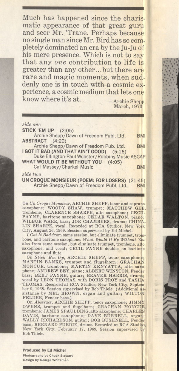 Archie Shepp - For Losers (Vinyl, LP, Album, Stereo) Very Good Plus (VG+) / Very Good Plus (VG+)