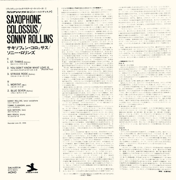 Sonny Rollins - Saxophone Colossus (Vinyl, LP, Album, Reissue, Mono) Good Plus (G+) / Good Plus (G+)