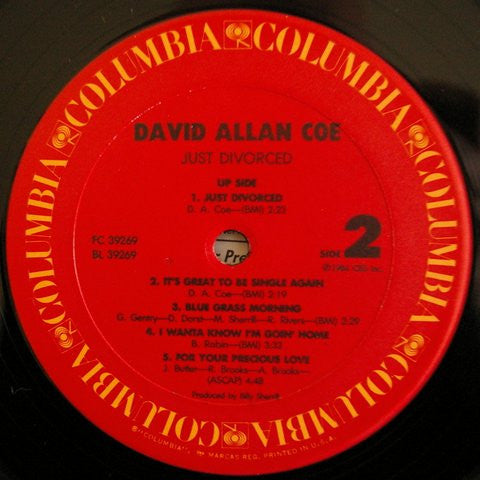 David Allan Coe - Just Divorced (Vinyl, LP, Album) Very Good (VG) / Very Good (VG)