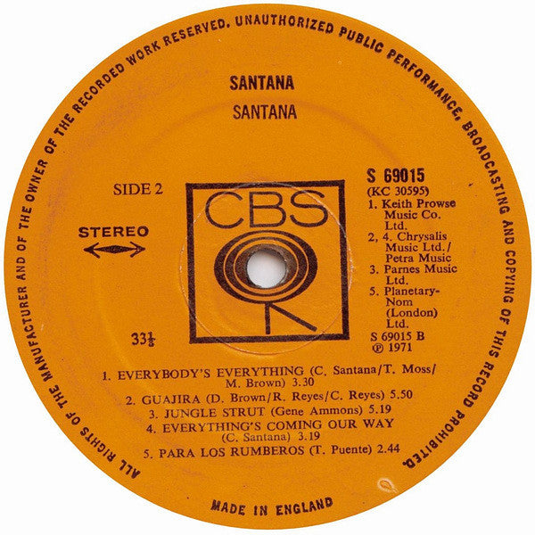 Santana - Santana (Vinyl, LP, Album) Very Good Plus (VG+) / Good Plus (G+)