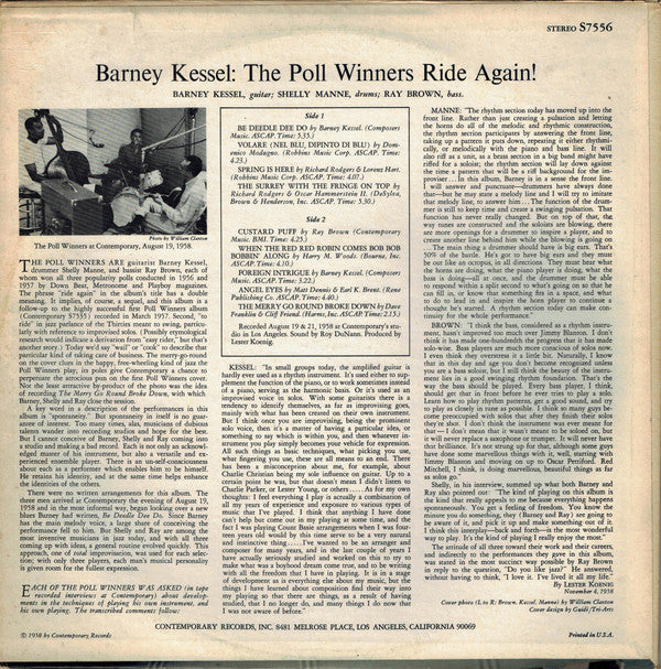 Recorded August 19 & 21, 1958 at Contemporary's studio in Los Angeles.