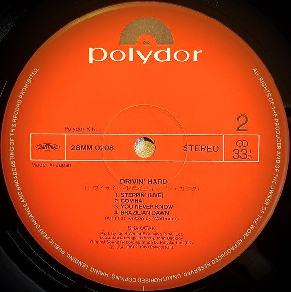 Shakatak - Drivin' Hard (Vinyl, LP, Album) Very Good Plus (VG+) / Very Good Plus (VG+)