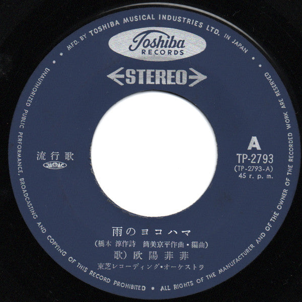 Ouyang Fei Fei - 雨のヨコハマ (Vinyl, 7", Single) Very Good Plus (VG+) / Very Good (VG)