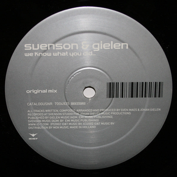 Svenson & Gielen - We Know What You Did... (Vinyl, 12", 45 RPM) Very Good (VG) / Very Good (VG)