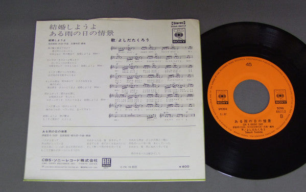 Takuro Yoshida - 結婚しようよ (Vinyl, 7", 45 RPM, Single) Very Good Plus (VG+) / Very Good (VG)