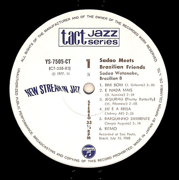 Sadao Watanabe - Sadao Meets Brazilian Friends (Vinyl, LP, Album) Very Good Plus (VG+) / Very Good Plus (VG+)