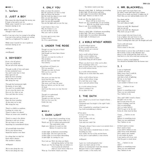 2nd pressing "Tsujo-ban" (ordinary/regular version) in gatefold cover with unique cover sheet & insert featuring Japanese liner notes & English lyrics.Left side of the unique cover sheet has a facsimile obi printed on it indicating the title, price, catalog number etc. A red box on top still notes "Japanese Limited Edition" however the yellow box below that with "KISS" logo no longer has additional text indicating it comes with 4 special bonus goods.