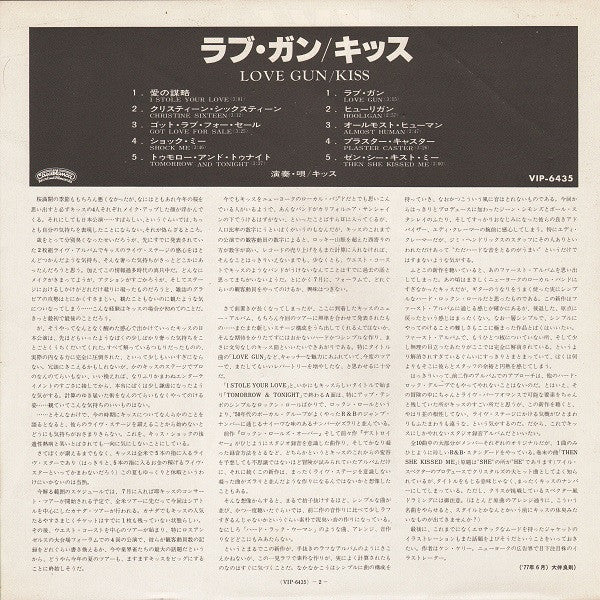 With Obi and lyrics sheet and "love gun" and "Bang!" inserts and Poster. Sleeve/Inserts: slight stain.